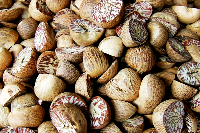 The best-known member of the genus is A. catechu, the areca nut palm.[2][4] Several species of areca nuts, known for their bitter and tangy taste, raw or dried, are routinely used for chewing, especially in combination with the leaves of betel and dried leaves of tobacco. Areca nut is also popularly referred to as betel nut because of as its usage in the country for mastication with betel leaves. In Assam, areca nut is also known as tamul in the local dialect.
